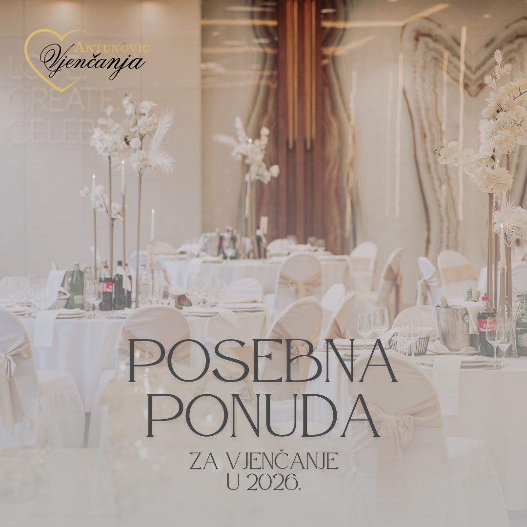 Do kraja 2025. rezervirajte termin za vjenčanje u 2026. u Hotelu Antunović Zagreb i ostvarite posebne pogodnosti i popuste!