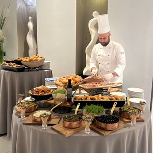 Naš tim će se pobrinuti da vaš dan bude ispunjen čarolijom - od elegantne dvorane, slatkog stola i koktela, do ekskluzivnih dodataka poput rezanja pršuta pred gostima.